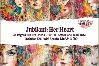 Whimiscal Mixed Media Joy Junk Journal Paper | Printable DigitalHeart Paper | Rainbow Digital Paper | She Art Printable | Collage Fun